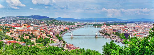 Fototapeta premium Panorama Widok na Most Elżbiety i Budapeszt, łączący most