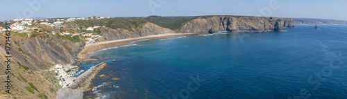 Obraz premium Panorama with Cliffs, beach and houses in Arrifana