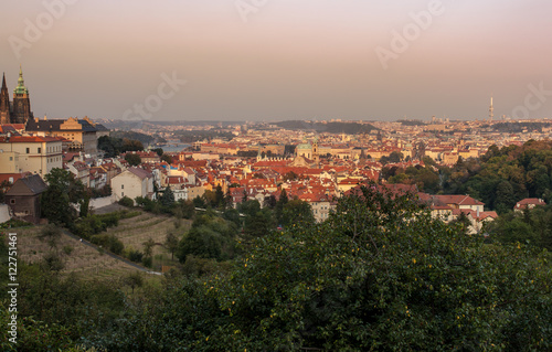 © Alice_D, Fototapeta premium Panoramablick auf Prag in der Abendsonne von Kloster Strahov Hügel
