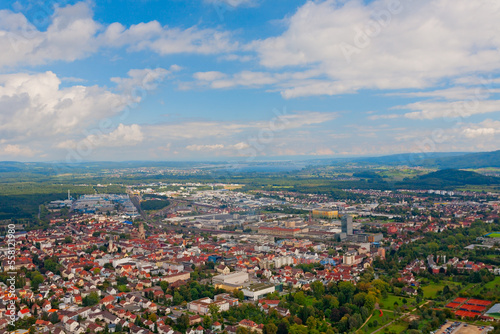 © santosha57, Fototapeta premium Panoramablick über die Stadt Singen und den Bodensee, Deutschland