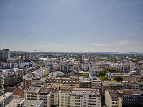Naklejka premium Panoramablick über Ludwigshafen am Rhein an einem klaren Sommertag