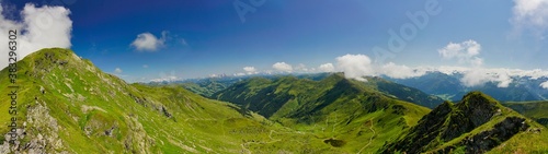 © Helmut Scheuer, Fototapeta premium Panoramablick vom Pinzgauer Grasberg Geißstein in die Kitzbühler Alpen