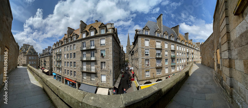 Naklejka premium Panoramafoto der Altstadt und der Stadtmauer von Saint Malo, Bretagne,...