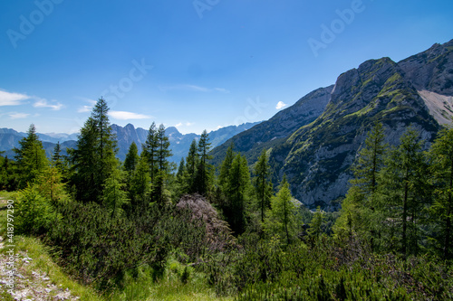 © Miroslav, Fototapeta premium Panoramatic view on the way to Vrsic viewpoint, Vrsic pass, Slovenia