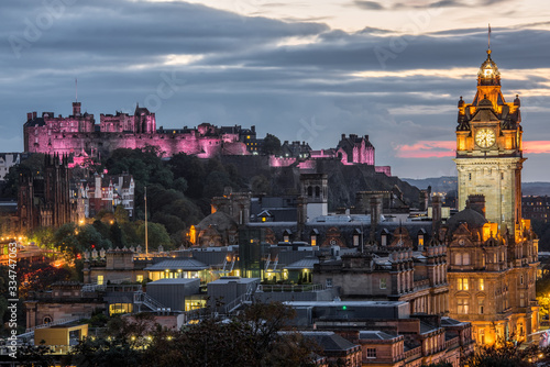 © surangaw, Fototapeta premium Panoramę miasta Edynburg i zamek w nocy, Szkocja
