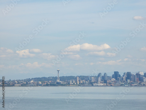 Naklejka premium panoramę seattle w miesiącach letnich z zachmurzeniem