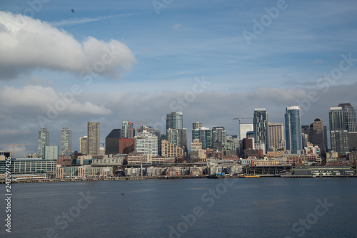 Naklejka premium Panoramę Seattle z promu na wyspę Bainbridge