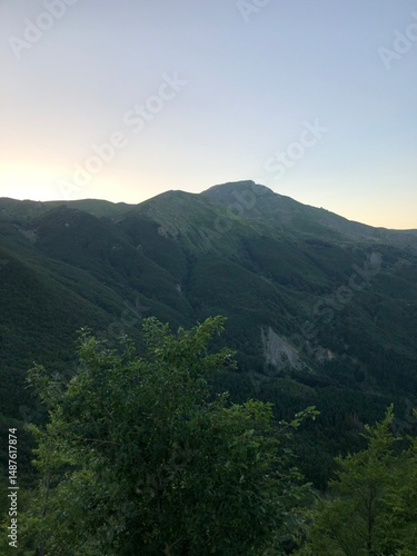 © Вова Посикера, Naklejka premium Panorami nontagnia alberi cascata natura