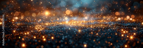 © Micro, Naklejka premium Panoramic Abstract Background of Glowing Particles and Bokeh Lights