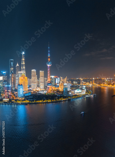 © Weiming, Fototapeta premium Panoramic aerial photographs of the night view of Lujiazuno City, Shanghai, China