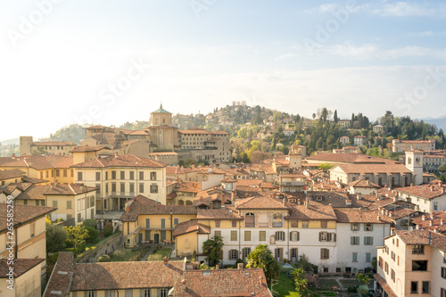 Fototapeta premium Panoramic aerial view of Bergamo Alta, the upper city. It is a medieval town...
