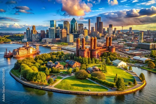 © prapatsorn, Naklejka premium Panoramic Aerial View of Downtown Seattle Skyline from Gasworks Park