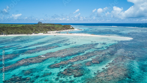 © Alex Pelikh, Obraz premium Panoramic aerial view of Île Plate (Flat Island) and Pigeon House rock are picturesque islands in the Indian Ocean, located off the northern coast of Mauritius.