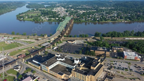 Fototapeta premium Panoramic aerial view of Parkersburg, West Virginia, featuring the Ohio...