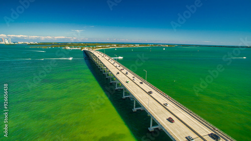 © jovannig, Obraz premium Panoramic aerial view of Rickenbacker Causeway, Miami