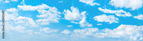 Fototapeta premium Panoramic background of blue sky with white clouds