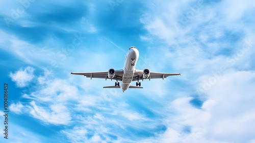 © Daniel, Fototapeta premium Panoramic Background with flying plane in blue sky