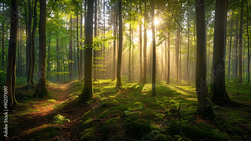 © CreativeCreations, Naklejka premium Panoramic beautiful deep forest waterfall in Thailand