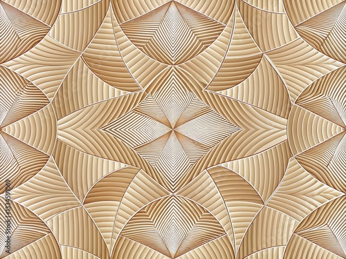 © Arnada, Obraz premium Panoramic Beige Geometric Wall Art: Curved & Straight Lines Abstract Pattern for Interior Design