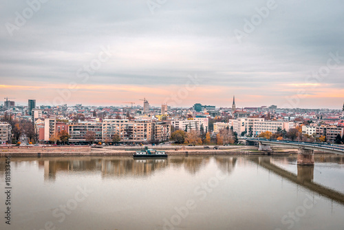 Naklejka premium Panoramic city view of Novi Sad with buildings in background