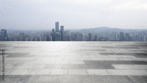 © zhouyilu, Fototapeta premium Panoramic City View Under a Cloudy Sky
