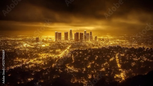 © Santy Hong, Fototapeta premium Panoramic cityscape of Los Angeles from a mountaintop, breathtaking view
