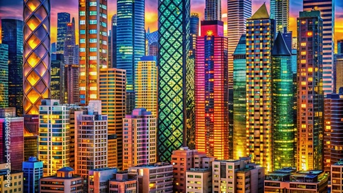 © Four888, Obraz premium Panoramic Cityscape: Repeating Architectural Patterns, Modern Building Facades, Urban Skyline, Geometric Design, Architectural Photography
