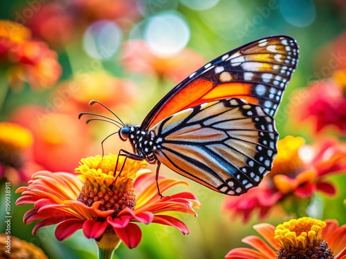 © Four888, Obraz premium Panoramic Close-Up: Butterfly Pollinating Flower, Detailed Pollen Collection
