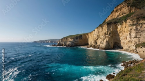 Obraz premium Panoramic coastal cliffs with blue ocean