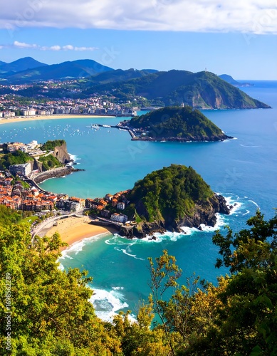 © Loncing, Obraz premium Panoramic coastal view of a Spanish town nestled beside a bay