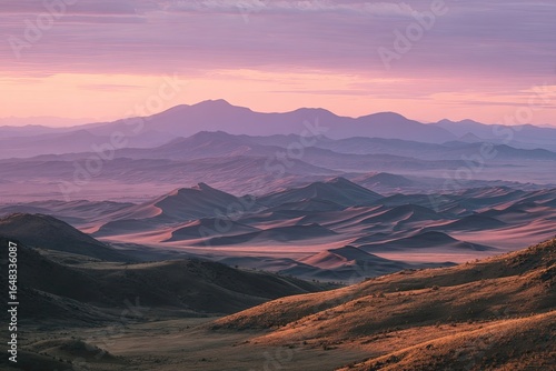 © Sahril, Fototapeta premium Panoramic desert mountain range at sunrise