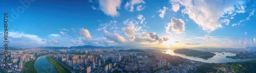 © Thitiwadee, Fototapeta premium Panoramic drone shots flat design side view highaltitude shots animation vivid