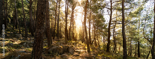Obraz premium Panoramic forest at sunrise