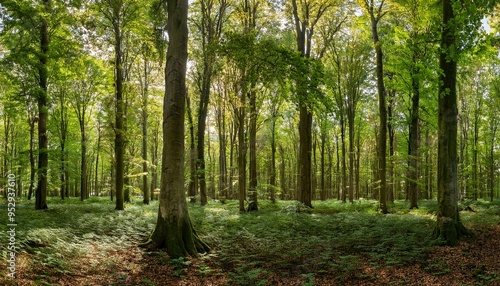 © Patti, Naklejka premium panoramic forest of beech and oak trees