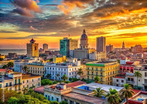 © prapatsorn, Naklejka premium Panoramic Havana Skyline: Vibrant Cuban Architecture at Sunset