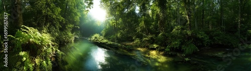 Obraz premium Panoramic hdr river scene lush forest nature