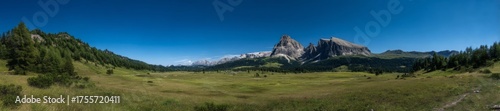 Fototapeta premium Panoramic hdr view of majestic mountains and lush meadows in nature
