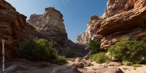 Fototapeta premium Panoramic hdr view of rocky canyon landscape
