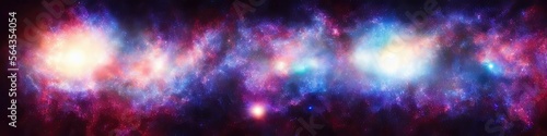 Naklejka premium panoramic image of outer space - the universe and galaxy scene created by generative AI