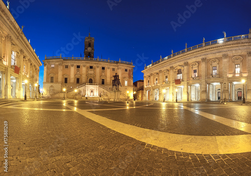 © tilialucida, Obraz premium Panoramic image of Piazza del Campidoglio on Capitoline Hill in Rome at night