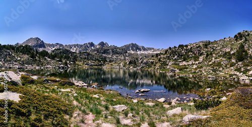 Naklejka premium Panoramic lake at llac dels pessons route in Andorran Pyrenees