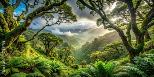 © sanom, Obraz premium Panoramic Laurisilva Forest Tenerife, Canary Islands - AI Photo