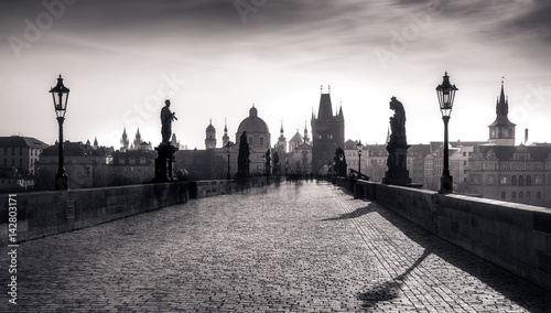 © Martin M303, Obraz premium Panoramic monochrome view of Charles bridge in long exposure, Prague