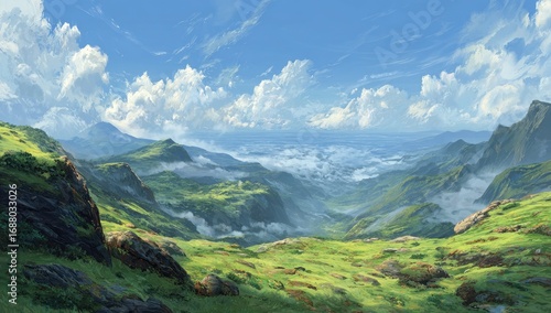 © ALEXANDER, Obraz premium Panoramic mountain landscape