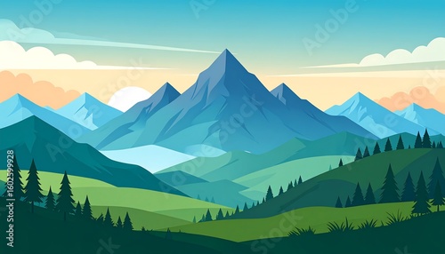 © bismillah, Naklejka premium Panoramic mountain landscape at sunrise