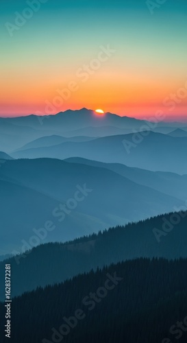 © Peluru, Obraz premium Panoramic Mountain Ridges at Sunrise: A Vision of Natural Splendor