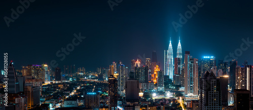 Obraz premium Panoramic night view of Kuala Lumpur city skyline,