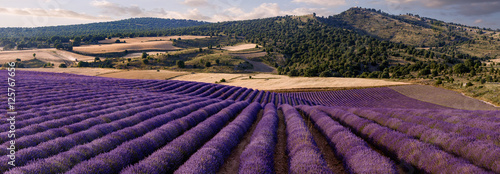 Naklejka premium Panoramic of a lavender field in the province of Guadalajara. Spain