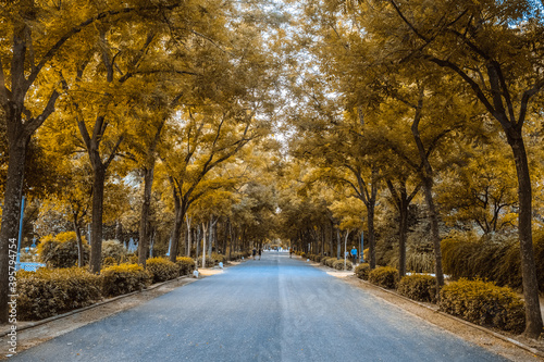 © Workphoto, Fototapeta premium Panoramic of a path surrounded by trees.