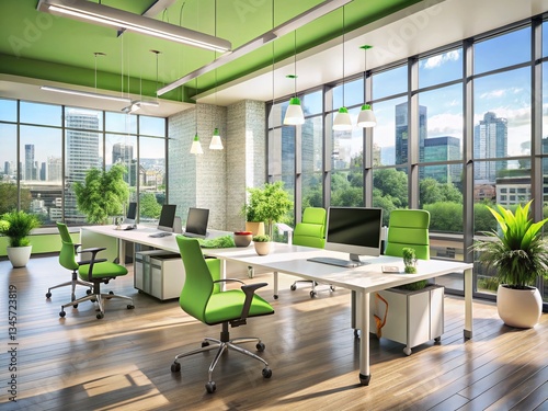© Adisorn, Fototapeta premium Panoramic Office Design: Modern Workspace with Natural Light